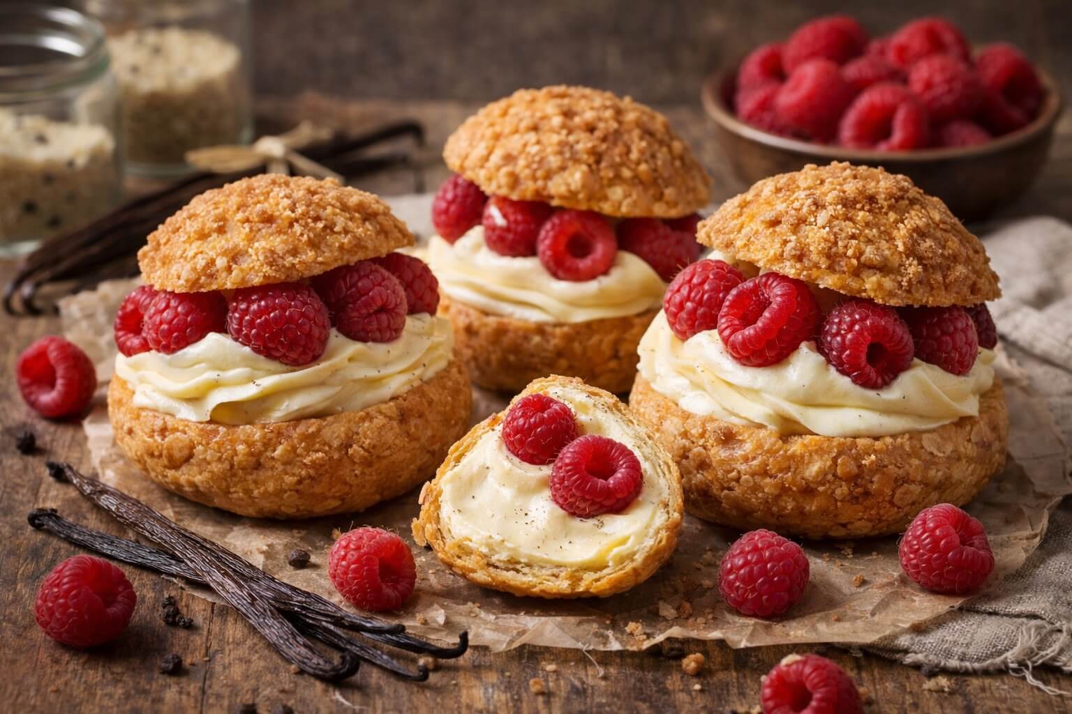 Découvrez nos choux à la crème vanille garnis de framboises fraîches, un dessert classique revisité pour éveiller vos papilles. Parfaits pour toutes occasions, ces petits délices offrent une explosion de saveurs grâce à la douceur de la vanille mélangée à l’acidité des framboises. Essayez cette recette facile pour un résultat gourmand et élégant.